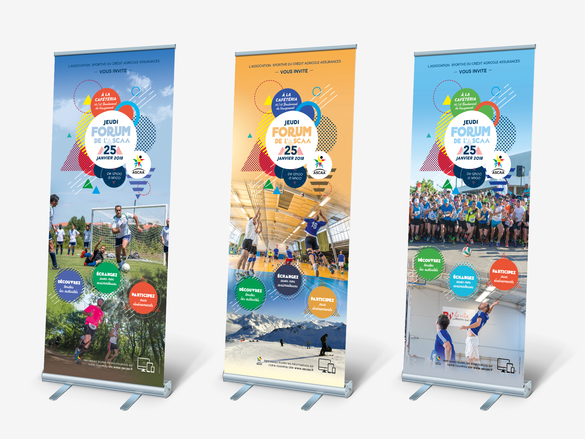 Pour l'organisation du forum de cette association sportive d'entreprise, j'ai crée les visuels pour promouvoir l'événement et les activités sportives présentées aux salariés.